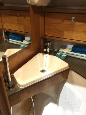 Where the Cruiser 32/33 lead the way over their opposition was the large heads compartment, of course, with that area taken up by a cabin the heads has moved forward and shrunk considerably; it’s now small with a toilet, shower and a quirky shaped sink, but not a lot else.