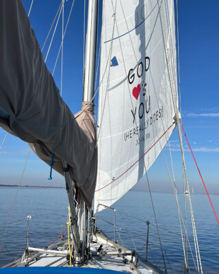 I was at my wit’s end, just bawling my eyes out, sitting on the little settee there in the saloon the salon, and I hear this inner voice that says, ‘by this time tomorrow you will be on land’. And it was the most amazing thing, early in the wee hours of that next morning, I was pinging adrift on my VHF, and a boat hailed me.’