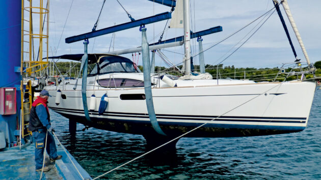 I happened upon a Sun Odyssey 45DS that seemed to tick a lot of my boxes and sported alluring, flowing lines. So this was the model. Finally, a five-year-old 45DS in Croatia seemed the most attractive, not least because it was the two-cabin version with a vast ensuite owner’s cabin, powered winches, air-con and a hydraulic passerelle. I chose a surveyor and flew out to Pula with him.