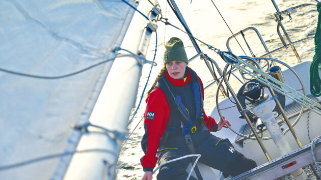 Burn fuel as sparingly as possible and use the sails at every opportunity is Sidse’s sailing philosophy. Photo: Sidse Birk Johannsen