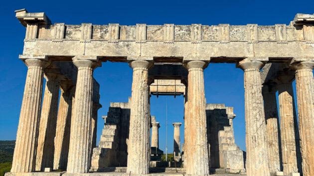 Aegina is home to the Temple of Aphaia, which formed part of a triumvirate of important sites for the ancient Greeks. This triumvirate also included the Parthenon in Athens and the Temple of Apollo in Delphi. The temple’s position on the hill also affords breathtaking views across the Saronic Gulf towards Corinth, Salamis, Piraeus, and the outskirts of Athens.