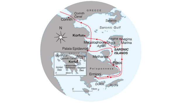 The Saronic Gulf offers sailors a mix of deep blue seas, ancient history, and sheltered harbours between the Peloponnese and Athens