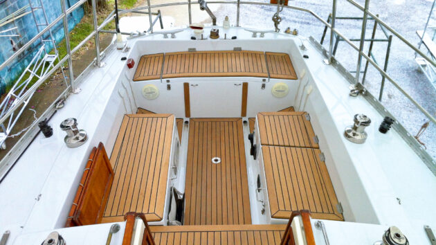 Renewing the teak, stainless guardrails and stern arch in Thailand 2013