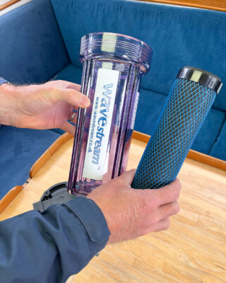 Paul Gullett, MD of Wave International, explained to me that he recommends boat owners replace their cartridge every year; however, the Wavestream 2 cartridge can hold one and a half litres of diesel or lube oil, which would be quite a major spillage.