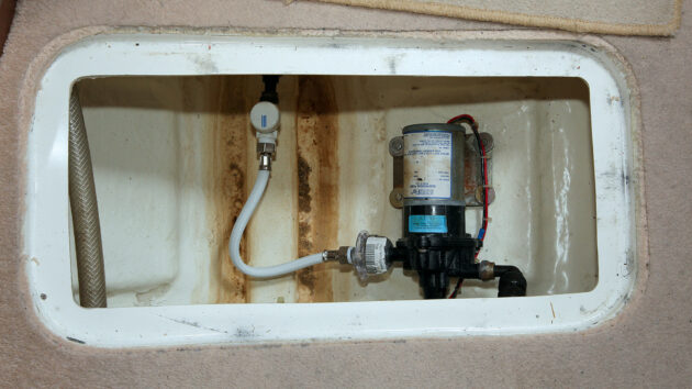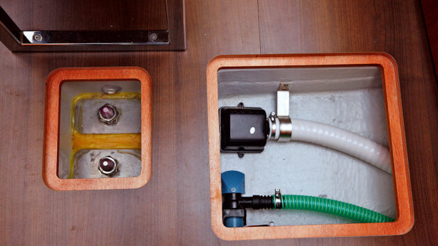 ‘In addition, flow rates are often quoted for 13.5V of power reaching the pump, but that’s only likely to happen with the engine running. If the service batteries are half-discharged at around 12.2V there will be a further reduction in flow.