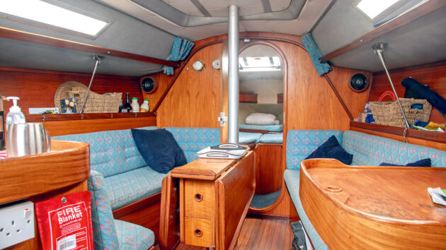 An unusual feature is a chart table that straddles the aft end of the starboard saloon berth. The berth runs beneath it and continues in the form of a 32in (81cm) long seat abaft the chart table.