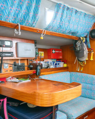Plenty of instrument and stowage space outboard of the chart table, which straddles the aft end of the starboard settee berth. Photo: David Harding