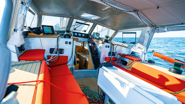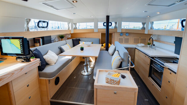 The raised saloon brings the seats up to the level of the nav station and closer to the action on deck. Photo: Nicolas Michon