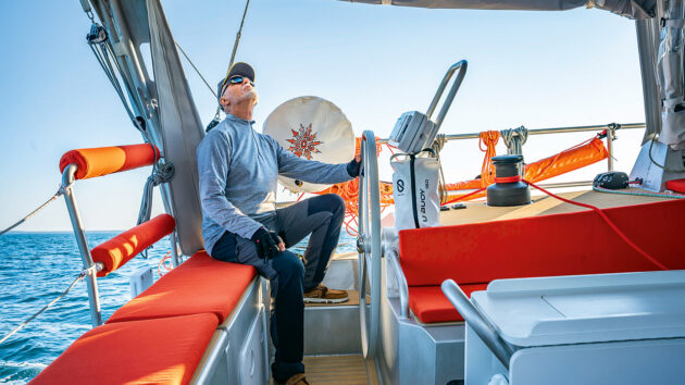 With this combination of sail and motor, we could have continued for more than six hours before depleting the 28.8kW lithium-ion phosphate battery bank and resorting to the generator, despite there being only four knots of true wind.
