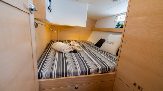 Aft cabins are a good size with rectangular berths and plenty of stowage, ventilation and natural light. Photo: Nicolas Michon