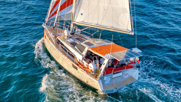 Just 3.3kW of propulsion power more than doubled boat speed to 4.4 knots, markedly improving range before needing power from the range-extending 11kW Fischer Panda diesel generator. Unlike motorsailing with a diesel propulsion engine, the only audible sound is a very low level from the gearbox – a noise that’s normally drowned out by the racket of even the best soundproofed internal combustion engines.
