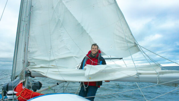 However, the headsail started to delaminate. It was made of two layers with a carbon-fibre mesh in between, and the glue appeared to be perishing. There were large tears coming up between the seams and we had to drop the sail and hand-stitch it twice while going along.