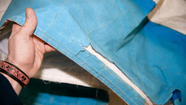 A big tear in the body of a sail may look dramatic but it is relatively easy to fix. This technique works on laminate as well as Dacron sails.