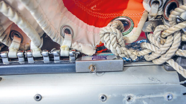 It’s always a good idea to have spare sliders on board. These can be snapped on with a pair of pliers, or shackled.
