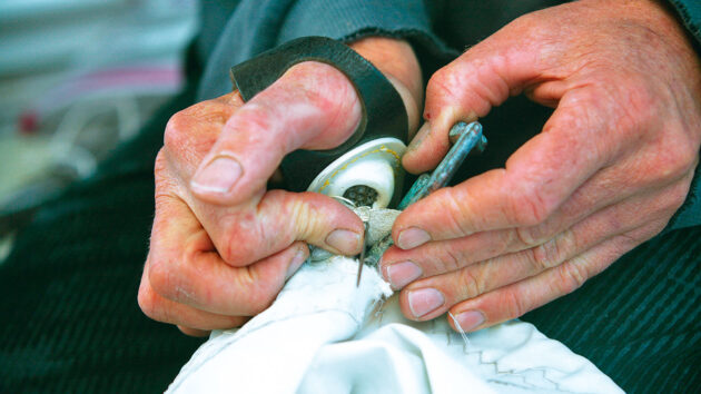 When making repairs a palm will stop the needle slipping and stabbing you. Photo: Alamy.