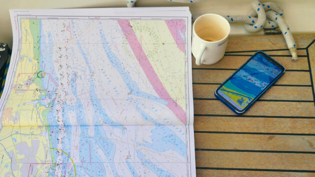 A mobile phone or a tablet with navigation software and digital charts are much easier for singlehanded use in the cockpit than fixed chart plotters, unless these are, as some, fitted to the wheel pedestal immediately in front of the wheel – which looks rather ugly, interferes with the steering compass and is not really necessary.
