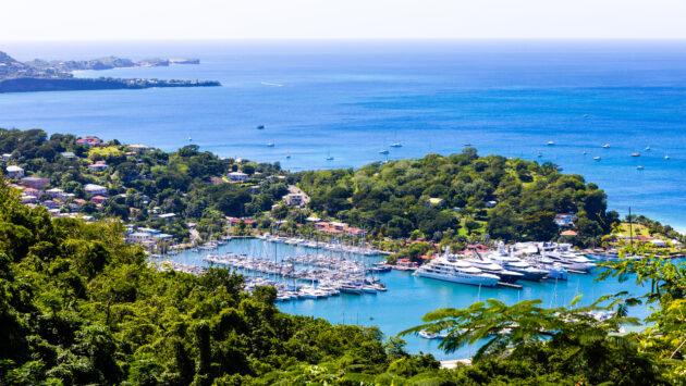 An aerial view of Port Louis Marina near St George’s in Grenada